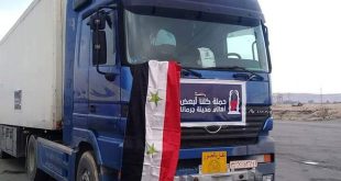ريف دمشق-سانا وصلت إلى سورية اليوم قافلة مساعدات لبنانية عبر معبر جديدة يابوس الحدودي، مقدمة من حركة الناصريين المستقلين (المرابطون)