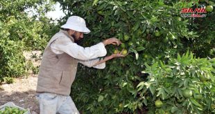 طرطوس-سانا بدأ مزارعو الحمضيات في منطقة يحمور بمحافظة طرطوس بجني محصولهم من مختلف الأصناف