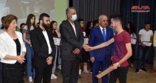طرطوس-سانا كرمت محافظة طرطوس الطلاب المتفوقين في شهادتي الثانوية العامة والتعليم الأساسي الحاصلين على المراكز الثلاثة