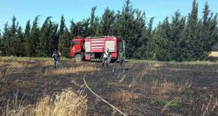 طرطوس-سانا أخمد عناصر فوج الإطفاء بمحافظة طرطوس حريقاً اندلع اليوم بأرض مزروعة بالقمح