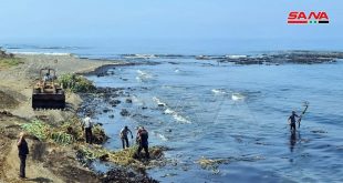 طرطوس-سانا تتواصل عمليات إزالة تلوث الفيول الذي تسرب من أحد خزانات المحطة الحرارية على شاطئ بانياس ويجري العمل من قبل مجلس مدينة طرطوس ومدينة بانياس باستخدام الآليات والوسائل الأخرى التي تساعد في جمع بقع الفيول لرفعها من المياه.