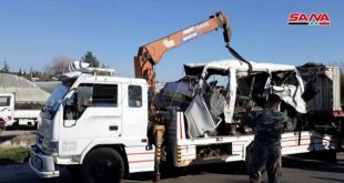 طرطوس-سانا توفي شخصان وأصيب 11 آخرون اليوم جراء حادث تصادم سيارة شاحنة مع سرفيس لنقل الركاب على أوتوستراد بانياس طرطوس. وأشار مدير الهيئة العامة لمشفى الباسل بطرطوس الدكتور اسكندر عمار في تصريح لمراسلة سانا إلى وصول شخصين متوفيين إلى المشفى …