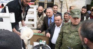 طرطوس-سانا تم اليوم توزيع مساعدات غذائية مقدمة من جمهورية كازاخستان على أسر الشهداء والجرحى والمفقودين والمتضررين جراء الأزمة في سورية بمدينة القدموس وريفها بالتعاون مع محافظة طرطوس ومركز التنسيق الروسي في حميميم. وبين عضو المكتب التنفيذي المختص لقطاع الصحة والشؤون …