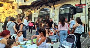 طرطوس-سانا الموسيقا برفقة الرسم في ورشة فنية بالهواء الطلق في ساحة السيدة بمدينة صافيتا نظمها المجتمع الأهلي