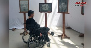 طرطوس-سانا نظمت محافظة طرطوس بالتعاون مع مشروع جريح وطن ودائرة الجرحى في المحافظة معرضاً فنياً لأعمال الجريح البطل