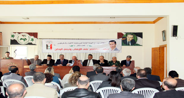 طرطوس-سانا طالب أعضاء فرع نقابة الأطباء في طرطوس بالالتزام بصرف الأدوية بموجب الوصفة الطبية وتفعيل لجنة مراقبة العيادات واستصدار قانون تفرغ الاطباء والتأمين ضد اخطار المهنة وأخطائها . ودعا الاعضاء خلال مؤتمرهم السنوي الذي انعقد اليوم تحت شعار “سوا” سننتصر …