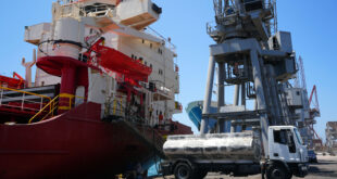 طرطوس-سانا بدأت اليوم في مرفأ طرطوس عملية نقل شحنة القمح الثانية التي وصلت مؤخراً إلى صوامع الحبوب بالمحافظات، وذلك عبر
