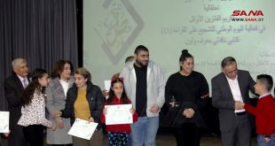 طرطوس-سانا نظمت مديرية الثقافة والمركز الثقافي العربي بمدينة طرطوس فعالية لتكريم الفائزين بمسابقة (القارى المتميز) التي أقيمت