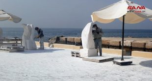 طرطوس-سانا على شاطئ مدينة طرطوس ينجز 12 نحاتاً ونحاتةً من مختلف المحافظات أعمال نحت جداريةً وستة