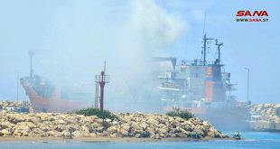 طرطوس-سانا أخمد عناصر الإطفاء في ميناء بانياس بمؤازرة من عناصر الإطفاء في مجلس مدينة بانياس والشركة السورية لنقل النفط حريقاً