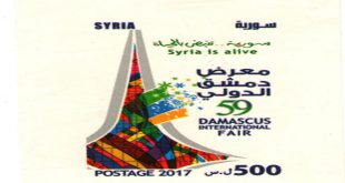 دمشق-سانا أصدرت المؤسسة العامة للبريد بمناسبة الدورة التاسعة والخمسين لمعرض دمشق الدولي طابعين وبطاقة بريدية ومغلفا لليوم الأول للإصدار على أن يتم وضعهم في التداول اعتبارا من يوم غد. والطابعان أحدهما من فئة 200 ليرة سورية والآخر من فئة 300 …