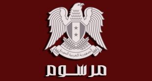 دمشق-سانا أصدر السيد الرئيس بشار الأسد اليوم المرسوم رقم 206 للعام 2021 القاضي بتكليف المهندس حسين عرنوس تشكيل الوزارة في الجمهورية العربية السورية. وفيما يلي نص المرسوم رئيس الجمهورية بناء على أحكام الدستور. يرسم ما يلي: المادة 1 – …