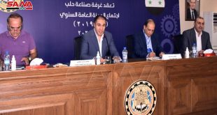 حلب- سانا ركز أعضاء غرفة صناعة حلب في مداخلاتهم خلال اجتماع الهيئة العامة للغرفة السنوي على المطالبة باستكمال وتامين الخدمات الضرورية للمناطق الصناعية في “الليرمون والشقيف والكلاسة والقاطرجي والراموسة والمدينة الصناعية في الشيخ نجار” وزيادة ساعات التغذية الكهربائية وتفعيل الخدمة …