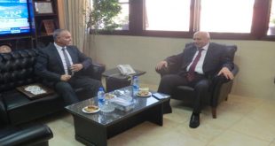 دمشق-سانا بحث مدير عام المركز العربي لدراسات المناطق الجافة والأراضي القاحلة “أكساد” الدكتور رفيق علي صالح اليوم مع القائم بأعمال السفارة التونسية بدمشق إبراهيم الفواري سبل تطوير التعاون بين الجانبين في مجال البحث العلمي الزراعي. وناقش الجانبان في مقر المركز …