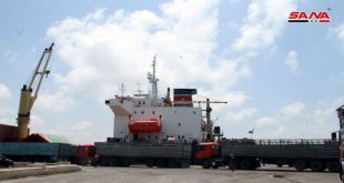 دمشق-سانا أعلن مدير المؤسسة السورية للحبوب يوسف قاسم عن تفريغ أربع بواخر محملة بـ 110 آلاف طن قمح مستورد كانت وصلت إلى مرفأ طرطوس خلال أيام عيد الفطر مبينا أنه بعد الانتهاء من تفريغ البواخر سيتم شحن الأقماح إلى المحافظات …