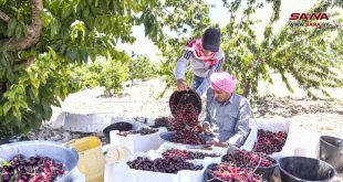 ريف دمشق-سانا على مساحة تتجاوز 3105 هكتارات تنتشر أشجار الكرز في بلدة قارة