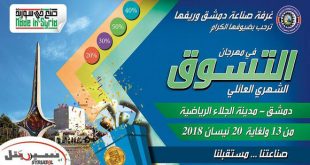 دمشق-سانا تفتتح مساء غد في صالة الجلاء الرياضية بالمزة فعاليات الدورة الـ 56 من مهرجان التسوق الشهري العائلي “صنع في سورية” الذي تنظمه غرفة صناعة دمشق وريفها بمشاركة أكثر من 120 شركة من كبرى الشركات الصناعية الوطنية ومن مختلف التخصصات الغذائية …