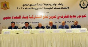 دمشق-سانا ناقش أعضاء الهيئة العامة لاتحاد غرف التجارة السورية خلال اجتماعهم السنوي اليوم الذي عقد تحت شعار ” دور جديد للغرف في تعزيز نهج التشاركية و بناء اقتصاد متين ” عددا من القضايا المتعلقة بتذليل عقبات العمل التجاري و تنظيم …