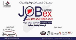 دمشق-سانا بمشاركة خمسين شركة من مختلف القطاعات الصناعية والتجارية ينطلق السبت القادم معرض التوظيف وفرص العمل جوبكس 2 على مدار ثلاثة أيام في ملعب تشرين في البرامكة بدمشق بعد أن أنهت شركة مسارات للمعارض والمؤتمرات الدولية جميع استعداداتها لإطلاقه. وفي تصريح …