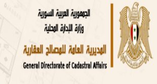 دمشق -سانا أعلنت المديرية العامة للمصالح العقارية “الانتهاء من أعمال التحديد والتحرير الحقلي لـ 11 ألف منطقة عقارية في مختلف المحافظات والعمل جار في 200 منطقة متبقية”. وفي تصريح لـ سانا أكد المدير العام للمصالح العقارية المهندس عبدالكريم ادريس أنه …