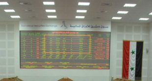 دمشق-سانا أغلقت جلسة تداولات سوق دمشق للأوراق المالية اليوم على حجم تداول قدره 9651 سهما موزعة على 17 صفقة بقيمة تداولات إجمالية بلغت 544ر1 مليون ليرة وانخفض مؤشر السوق 13ر6 نقاط عن الجلسة الماضية وبنسبة تغير سالبة قدرها 40ر0 بالمئة …