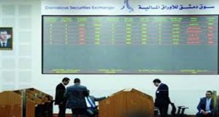 دمشق-سانا بلغ حجم التداول في سوق دمشق للأوراق المالية خلال الأسبوعين الفائتين من الشهر الجاري ما يقارب 481 ألف سهم بنحو 63 مليون ليرة سورية توزعت على 392 صفقة فيما أغلق مؤشر السوق دي دبليو إكس على 360ر1 نقطة. ووفقا …