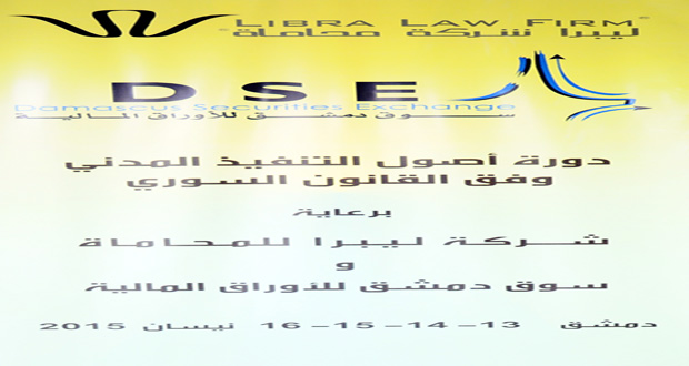 دمشق-سانا بالتعاون بين سوق دمشق للأوراق المالية وشركة ليبرا للمحاماة أقيمت ورشة عمل بعنوان “أصول التنفيذ المدنى وفق القانون السوري” بهدف تطوير آليات العمل في السوق وتأمين ثقة أكبر في التعاملات المالية بناء على معرفة القضاء والقانونيين للتعامل بالأوراق المالية …