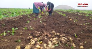 حماة-سانا بدأ فلاحو منطقة الغاب بمحافظة حماة عمليات جني محصول البطاطا الربيعية للموسم الزراعي الحالي.
