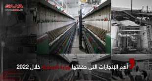 دمشق-سانا رغم ما تواجهه الصناعات السورية من صعوبات نتيجة تأثرها بالإجراءات الاقتصادية القسرية أحادية الجانب
