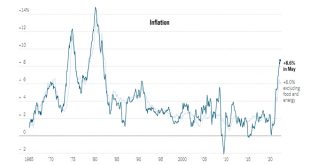 واشنطن-سانا ارتفع التضخم في الولايات المتحدة الأمريكية خلال شهر أيار الماضي إلى مستوى 8.6 بالمئة وهو الأعلى منذ كانون الأول عام 1981.