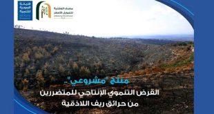 دمشق-سانا أطلقت الأمانة السورية للتنمية القرض التنموي الإنتاجي للمتضررين من الحرائق التي اجتاحت آلاف الدونمات