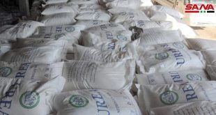 حماة-سانا وزعت الهيئة العامة لإدارة وتطوير الغاب بالتعاون مع فرع الهلال الأحمر العربي السوري منحة بذار قمح وأسمدة