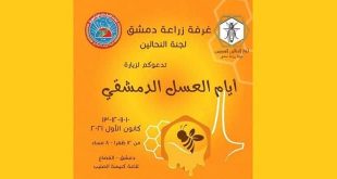 دمشق-سانا بمشاركة 40 نحالاً من القطاعين العام والخاص تنطلق غداً فعاليات مهرجان “أيام العسل” وتستمر حتى الـ 13 من الشهر الجاري وذلك بصالة كنيسة الصليب بالقصاع. ويعرض المهرجان الذي تنظمه غرفة زراعة دمشق بالتعاون مع وزارة الزراعة والإصلاح الزراعي منتجات …