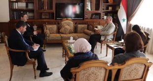 دمشق-سانا بحث وزير الزراعة والإصلاح الزراعي المهندس محمد حسان قطنا مع السفير الأبخازي بدمشق خوتابا باغرات راشوفيتش سبل تطوير العلاقات بين البلدين في مجال التبادل التجاري وتصدير المنتجات الزراعية. وأشار الوزير قطنا إلى ضرورة وضع برنامج تعاون علمي وفني ضمن …