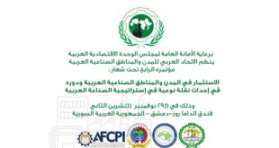 دمشق-سانا تنطلق في التاسع والعشرين من الشهر الجاري في دمشق فعاليات المؤتمر الرابع للاتحاد العربي للمدن والمناطق الصناعية العربية تحت عنوان الاستثمار في المدن والمناطق الصناعية العربية ودوره في إحداث نقلة نوعية وهو أول مؤتمر تنظمه الاتحادات العربية في دمشق …