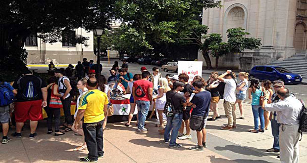 براتيسلافا-سانا نظم الاتحاد الوطني لطلبة سورية فرع سلوفاكيا اليوم وقفة تضامنية في ساحة الحرية وسط العاصمة السلوفاكية براتيسلافا تحت شعار “دعم الشعب والحكومة السورية في مكافحة الإرهاب المحلي والدولي” بمشاركة حشد من الطلبة وأبناء الجاليات العربية وناشطي سلام ومناهضين للارهاب …