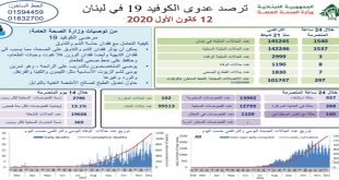 بيروت-سانا أعلنت وزارة الصحة اللبنانية اليوم تسجيل 1540 إصابة جديدة بفيروس كورونا و8 حالات وفاة جراءه خلال الساعات الـ 24 الماضية. وأشارت الوزارة في تقريرها اليومي حول مستجدات “كورونا” إلى أن عدد الإصابات الإجمالي ارتفع في لبنان إلى 145245 إصابة …