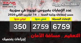 عواصم-سانا حصد فيروس كورونا أرواح أكثر من مليون و330 ألف شخص حول العالم منذ ظهوره في كانون الأول الماضي وفقاً لموقع وورلد ميترز الأمريكي. ووفق الموقع الذي يديره مطورون ومشغلون فأن إجمالي الإصابات بكورونا في العالم وصل لغاية الآن إلى …
