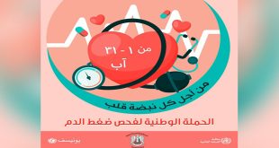 المحافظات-سانا أطلقت وزارة الصحة اليوم الحملة الوطنية لفحص ضغط الدم تحت شعار من أجل كل نبضة قلب والتي تستمر في كافة المحافظات لغاية نهاية شهر آب الجاري.