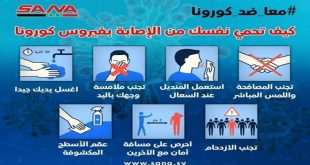 دمشق-سانا أكدت وزارة الصحة أن الوضع الوبائي الحالي لانتشار فيروس كورونا يتطلب الحذر الشديد واتخاذ أعلى درجة الاحتياطات كالتباعد المكاني وتجنب التجمعات وأماكن الازدحام وارتداء الكمامات والانتباه بشكل خاص لكبار السن والمصابين بمشكلات قلبية ورئوية وبداء السكري وغيره من الأمراض …