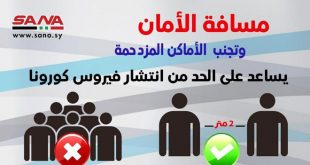 دمشق-سانا تشكل اللقاءات أيام الأعياد وما تحمله من تجمعات وزيارات بين العائلة والأصدقاء وتبادل التهاني والتحيات مخاطر كبيرة لجهة احتمال نقل العدوى لعدد من الأمراض ومنها فيروس كورونا حيث دعت جميع الجهات الصحية إلى التباعد المكاني والجسدي والالتزام بارتداء وسائل …