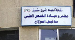 دمشق-سانا أعلنت نقابة أطباء دمشق تعليق العمل بعيادات ومخابر الفحص الطبي ما قبل الزواج لمدة يومين فقط من أجل اتخاذ الإجراءات والتدابير الاحترازية اللازمة لمنع الازدحام في إطار إجراءات التصدي لفيروس كورونا. وبينت النقابة في بيان لها أنه سيتم استئناف …