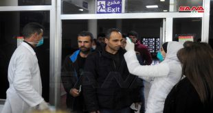 دمشق-سانا تواصل وزارة الصحة تطبيق إجراءاتها الصحية المشددة على المعابر الحدودية لمراقبة الوضع الصحي للمسافرين الوافدين إلى سورية ولرصد أي حالة مشتبه بها بالإصابة بفيروس كورونا في ظل تسارع انتشار الفيروس عالمياً. ومن المركز الصحي بمطار دمشق الدولي بينت رئيسة …