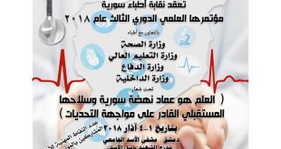 المزيدنقابة أطباء سورية تعلن موعد مؤتمرها الدوري لعام 2018