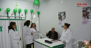 حمص-سانا بدأت اليوم الحملة الوطنية للتقصي عن السرطان في محافظة حمص تحت شعار (وعيك هو قوتك)