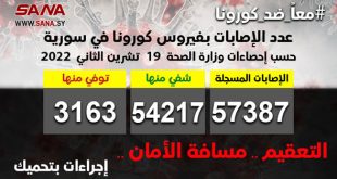 بيروت-سانا سجلت وزارة الصحة اللبنانية حالة وفاة واحدة و70 إصابة جديدة بفيروس كورونا خلال الساعات