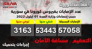 دمشق-سانا أعلنت وزارة الصحة اليوم تسجيل 15 إصابة جديدة بفيروس كورونا في سورية