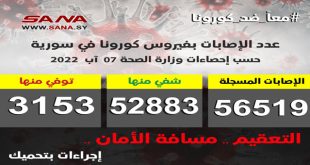 دمشق-سانا أعلنت وزارة الصحة اليوم تسجيل 45 إصابة جديدة بفيروس كورونا في سورية وشفاء 6 حالات من الإصابات