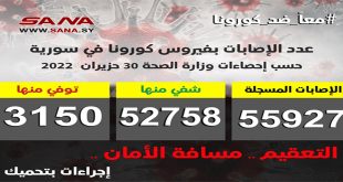 بيروت-سانا أعلنت وزارة الصحة اللبنانية تسجيل 1377 إصابة جديدة وحالة وفاة واحدة