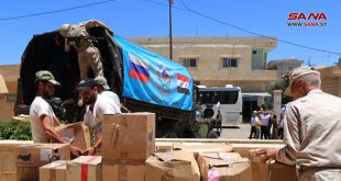 حلب-سانا وزع الوفد الروسي المشترك بين الوزارات والمجالس المحلية الروسية مساعدات غذائية وألعاباً وهدايا للأطفال
